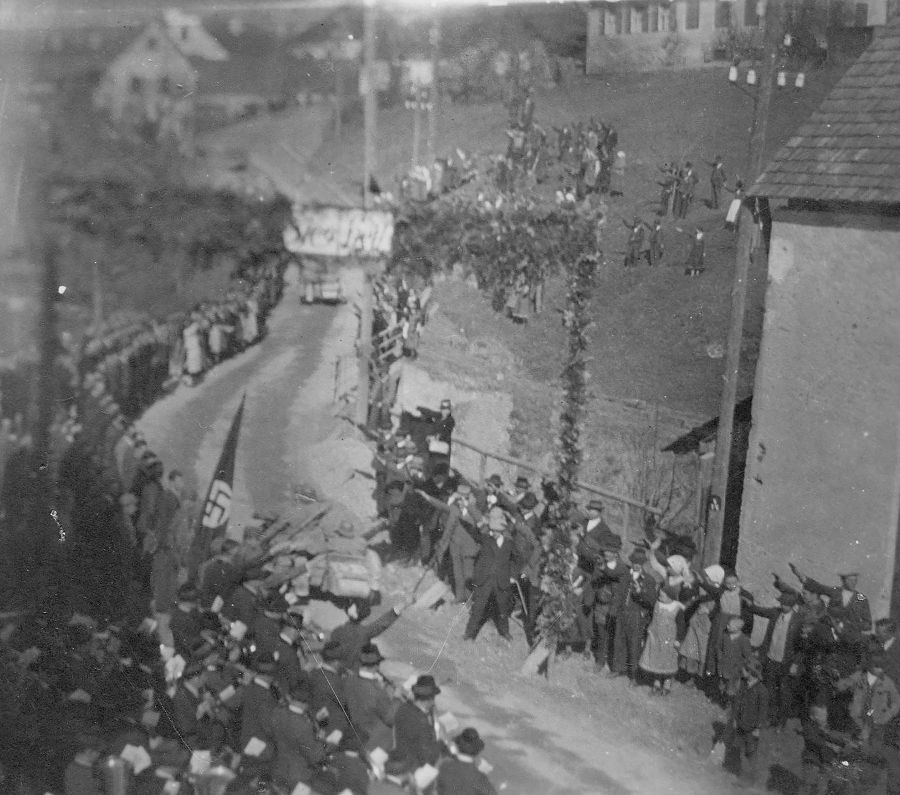 Im Zuge der für den 10. April 1938 geplanten „Volksabstimmung” über den bereits vollzogenen „Anschluss” Österreichs versuchten die neuen Machthaber auch die politischen Gegner·innen für den Nationalsozialismus zu gewinnen. So schickte etwa die Deutsche Arbeitsfront (DAF) ehemals sozialistisch oder kommunistisch organisierte Arbeiter auf „Kraft-durch-Freude-Fahrten”, um die „Segnungen” des „Dritten Reiches” persönlich kennenzulernen. 150 Arbeiter aus dem Bezirk Weiz fuhren am 21. März so „in das alte Reichsgebiet”, wie das Oststeirerblatt zu berichten wusste.[8] Zur Inszenierung der scheinbaren Geschlossenheit der Bevölkerung wurden in den Tagen bis zur „Volksabstimmung” in vielen oststeirischen Orten immense Propaganda durch Kundgebungen und (Fackel-)Aufmärsche betrieben, über die stets ausführlich in der gleichgeschalteten Presse berichtet wurde.[9]