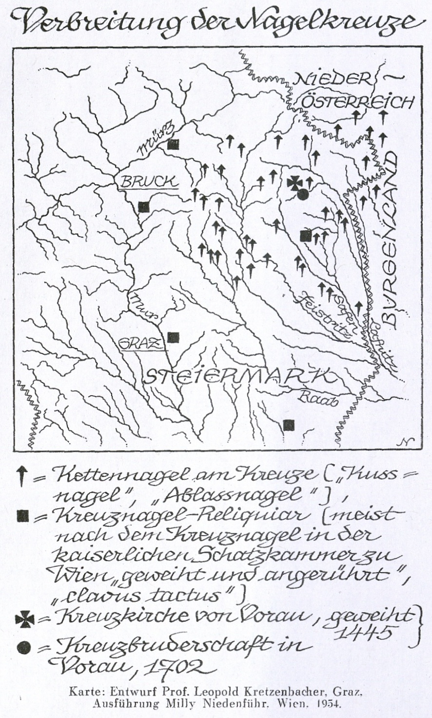 Abb. 2: Verbreitung der Nagelkreuze © Kretzenbacher, Der Nagel am Kreuz 1955, 27