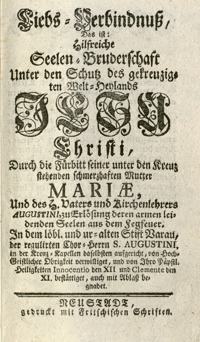 Statut der Vorauer Kreuzbruderschaft (1702).